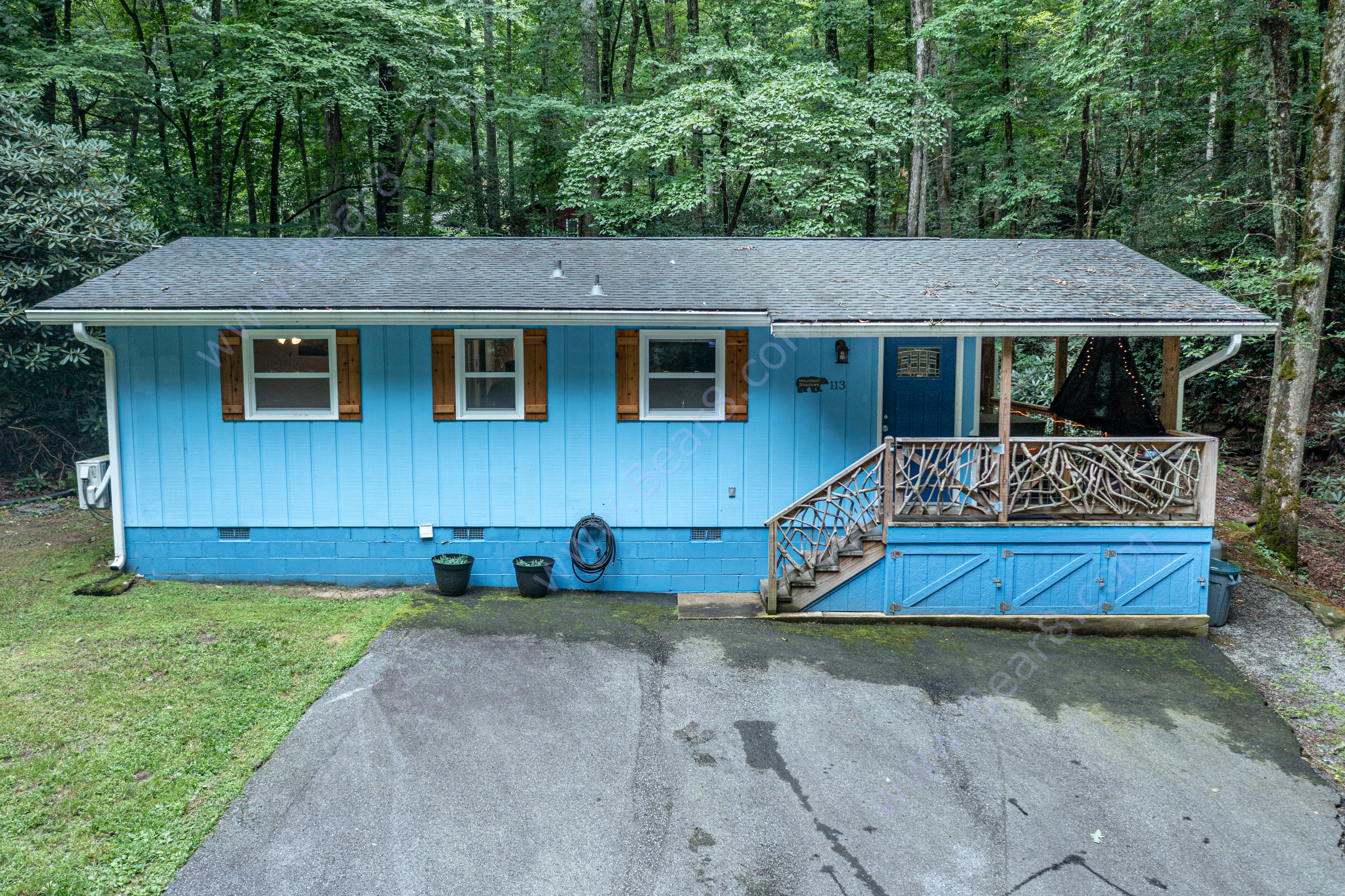 Mountain Shadows is a comfortable cottage built next to a babbling brook. Imagine driving down a country lane to a cottage nestled in the woodland. The cottage is on a quiet, peaceful street conveniently located between Brevard and Hendersonville, NC. There is a large porch where you can eat meals outside, have your morning coffee, or just enjoy relaxing in the mountain air. There is a nice view of the woods and longer range views during winter time.